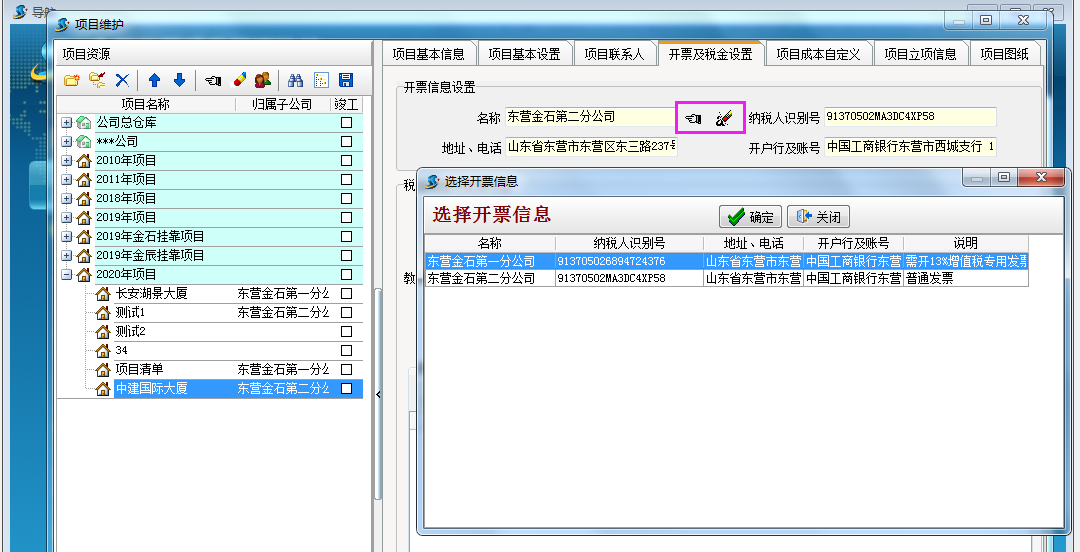 項(xiàng)目維護(hù)——設(shè)置開(kāi)票信息