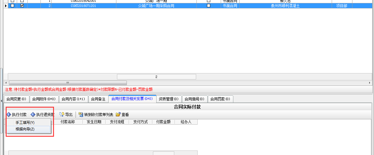 選擇付款基數(shù)和付款的比例(設(shè)置付款比例后對本合同超過70%不能繼續(xù)付款)