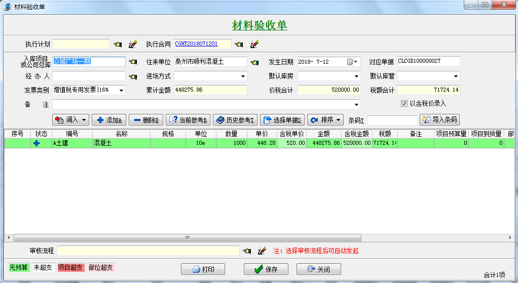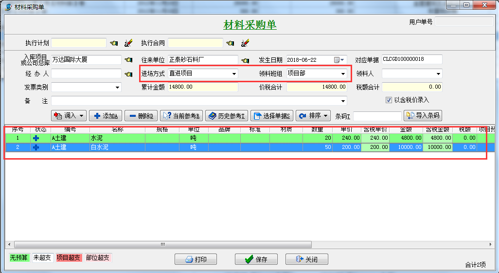 1.項(xiàng)目上沒有采購計劃以及采購合同的情況,可進(jìn)行直接采購,做工程項(xiàng)目管理軟件采購入庫單采購入庫或直進(jìn)項(xiàng)目,這種情況適合項(xiàng)目上零星材料的采購。如圖: