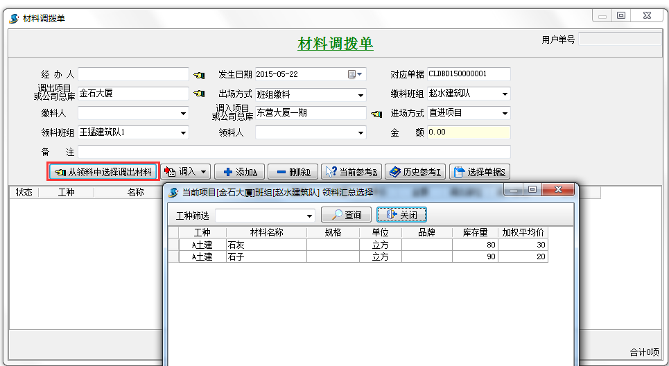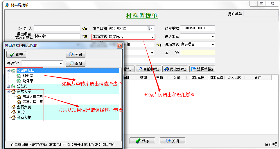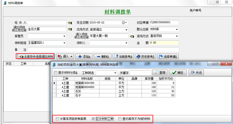 2、公司的A中轉(zhuǎn)庫將材料調(diào)撥到B項目。