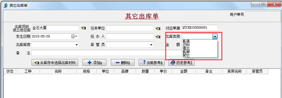 在做該單據(jù)時根據(jù)實際情況選好出庫類別。