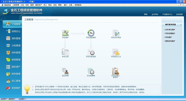 工程項(xiàng)目管理軟件界面順利完成改版,并更名為“金石工程項(xiàng)目管理軟件”?,F(xiàn)軟件已升級(jí)到3.0以上版本,請(qǐng)廣大新老客戶下載升級(jí)使用!