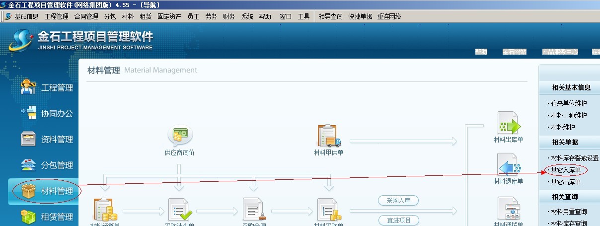 材料庫存通過其他入庫單來錄入庫存數(shù)量。如下圖: