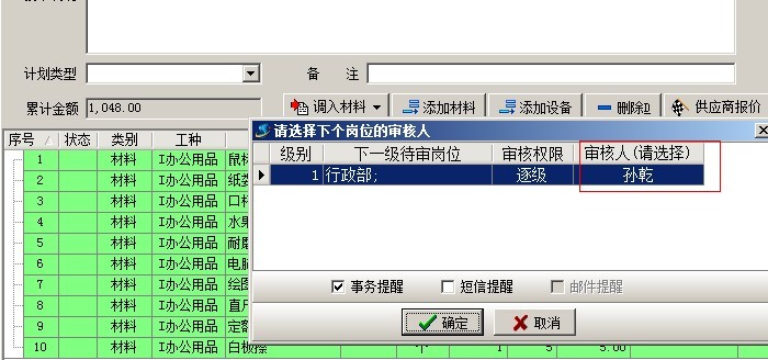審核方案選好后,點保存按鈕保存單據(jù),這是會彈出待審人選擇窗口,如下圖,這時我們要選擇好下一級的審核人,選擇好后,那么該用戶就是業(yè)務(wù)單據(jù)的待審人。在審核中心和業(yè)務(wù)單據(jù)列表中就可以看到該業(yè)務(wù)單據(jù)。