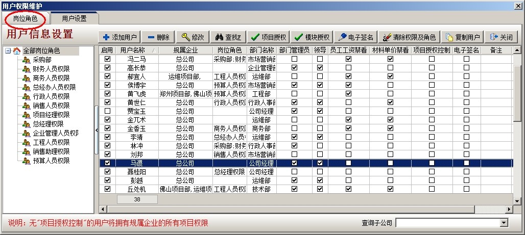 其他人員同樣的設(shè)置,對(duì)于相同部門權(quán)限相同的人員賦予同樣的角色即可。