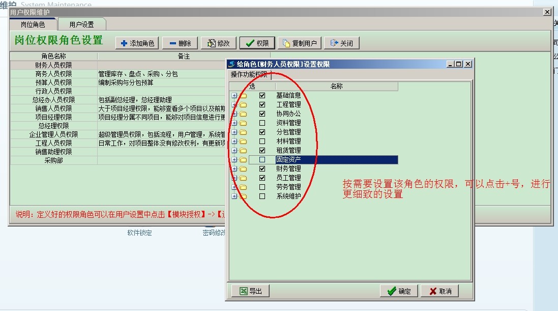 現(xiàn)在介紹一下2、按崗位角色設(shè)置權(quán)限: